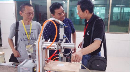 市专家组成员莅临观摩我校学生作品(注塑机械手模型)