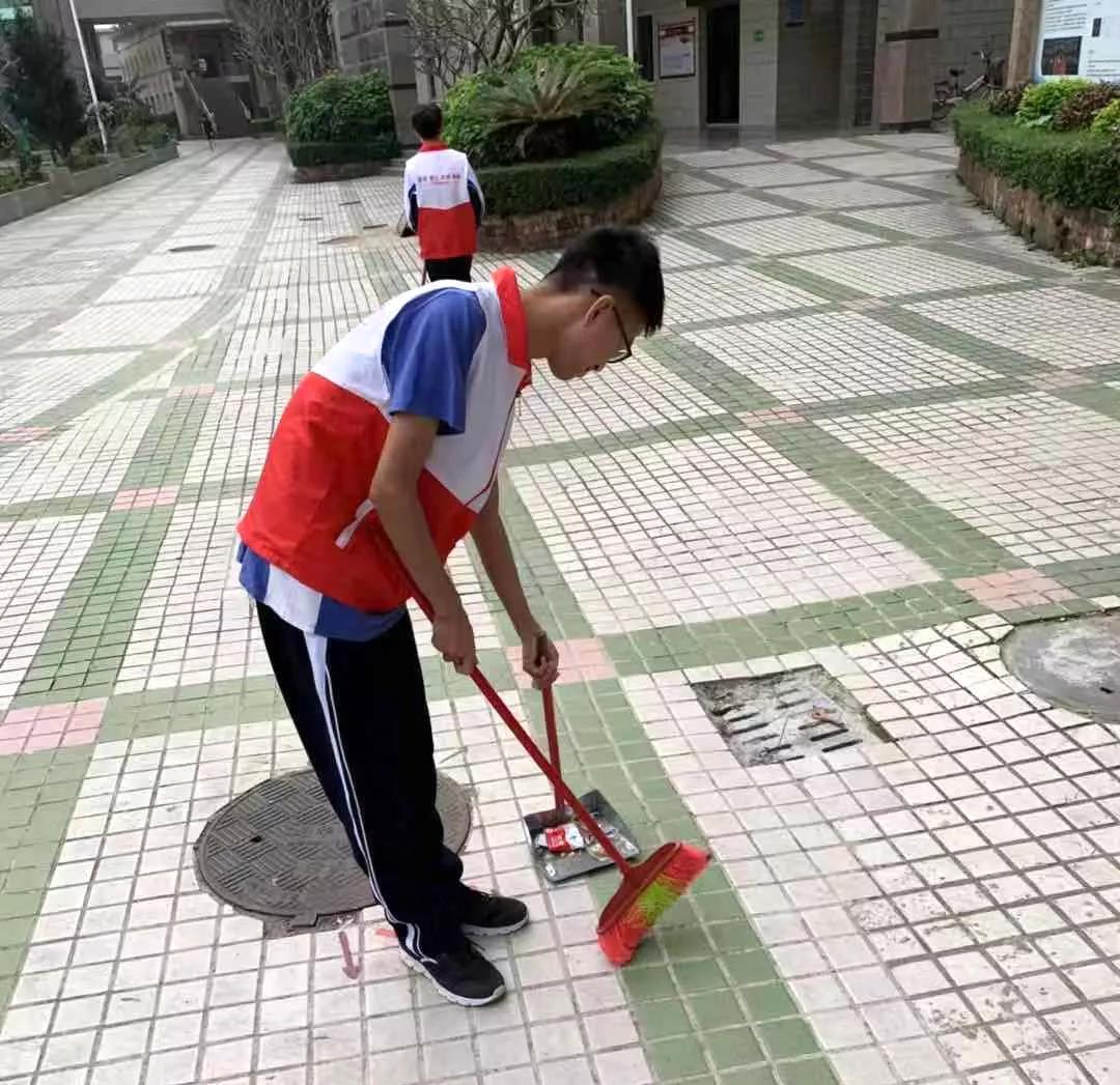 我们打扫校园卫生,清理死角垃圾,营造干净整洁的校园环境,给人舒畅的清新感。看着每一天也都有在好转,但我们仍不能放松警惕,我们要坚持站好最后一班岗!