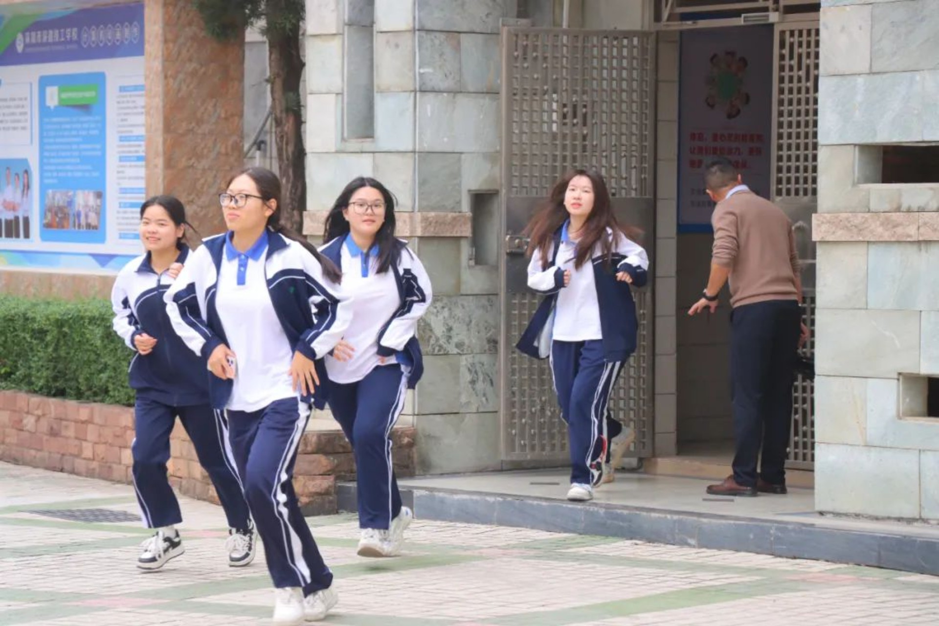 随着消防警报声急速响起,消防安全疏散演练正式开始了。老师沉着冷静地组织同学们疏散逃生。