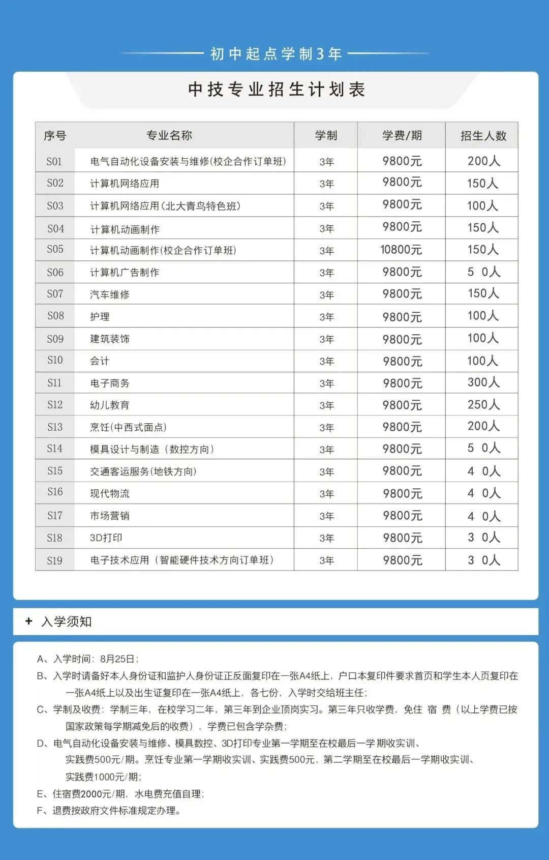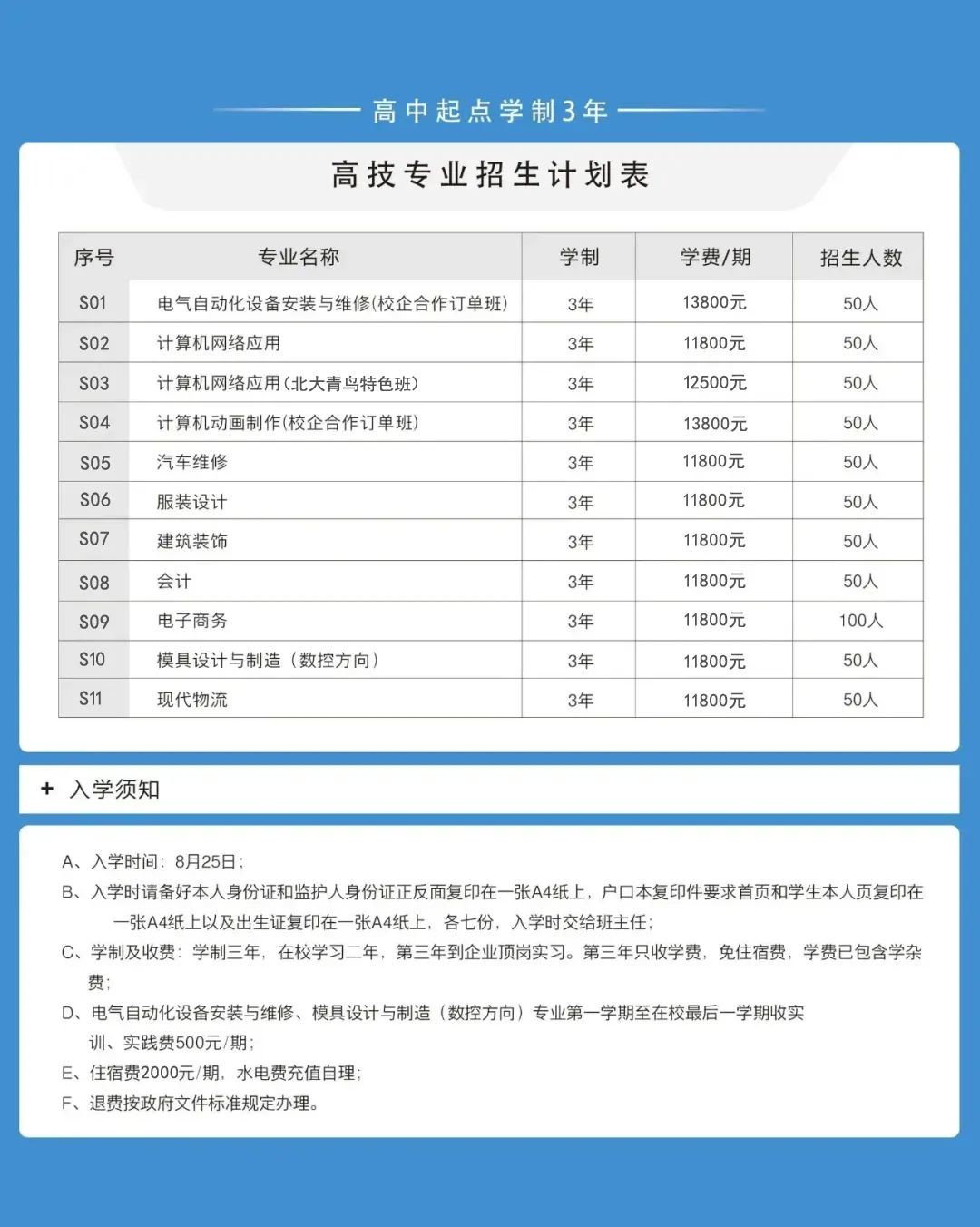 深圳市深德技工学校2024年秋季招生收费公示